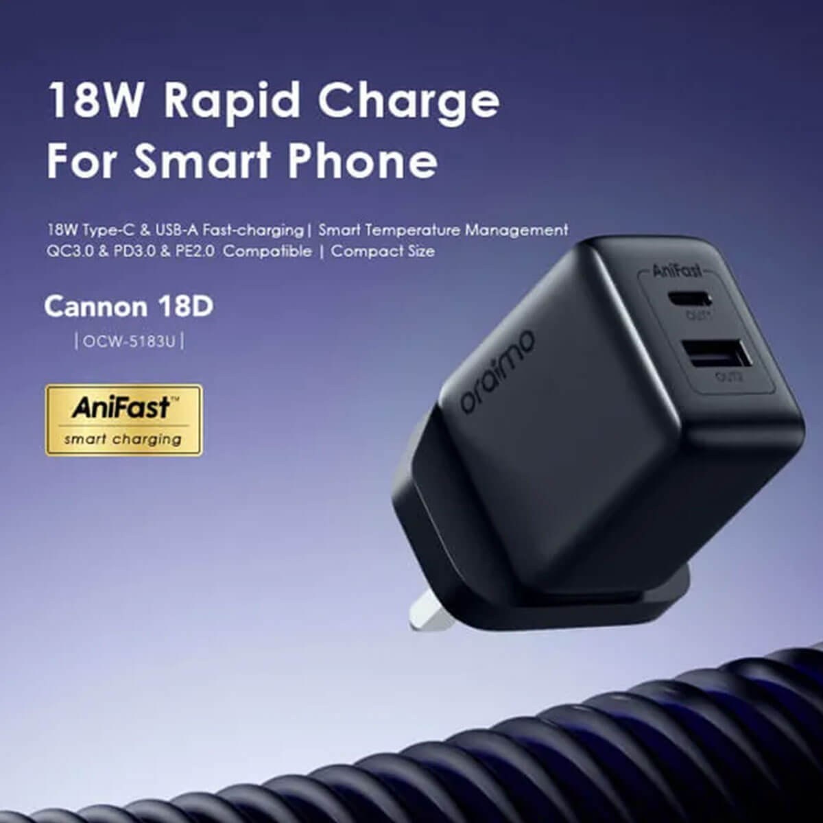 آداپتور ۱۸ وات اورایمو مدل Oraimo Cannon 18D