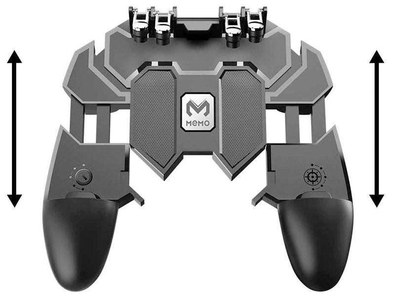 باز و بسته شدن عمودی شدن باعث شده تا برای استفاده از گوشی های ۴٫۷ تا ۵٫۵ اینچی هیچ مشکلی خاصی وجود نداشته باشد و دسته با حالت استند و نگهدارنده گوشی که دارد در هنگام بازی ارگونومی بالاتر و حس بازی کردن با یک کنسول دستی را می دهد. این طراحی باعث شده تا هم تمرکز و دقت شما در هنگام بازی افزایش پیدا کند و هم در استفاده های طولانی، کمتر خستگی ایجاد شود. همچنین مشکلی برای اتصال هندزفری یا کابل شارژ با توبجه به باز بودن کناره های دسته بازی ممو PubG مدل AK-66 نخواهید داشت.