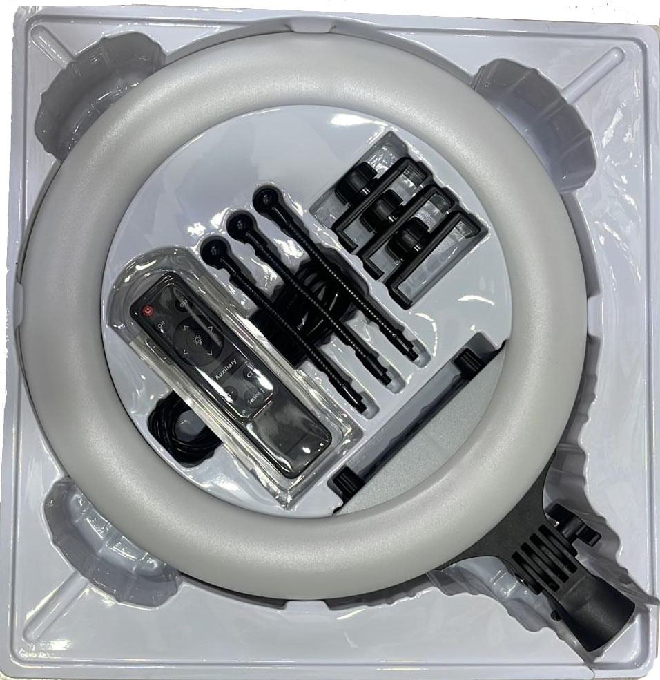 اقلام همراه با رینگ لایت می توان به ریموت کنترل برای تنظیم شدت نور و حالت نور ، خاموش یا روشن کردن تا برد ۵ متر و نیز ۳ عدد نگهدارنده موبایل ، کابل ۳