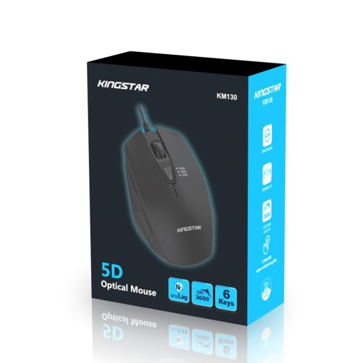 ماوس سیم دار کینگ استار مدل KM130 با طراحی زیبا و رنگ بندی جذاب به بازار عرضه شده است که میتوانید با هر دو دست به راحتی با آن کار کنید. تعداد کلیدهای تعبیه شده روی این ماوس محصول کمپانی کینگ استار ۶ عدد است و از دقت ۳۶۰۰ dpi بهره میبرد و دارنده استانداردهای CE-FCC- RoHS میباشد.