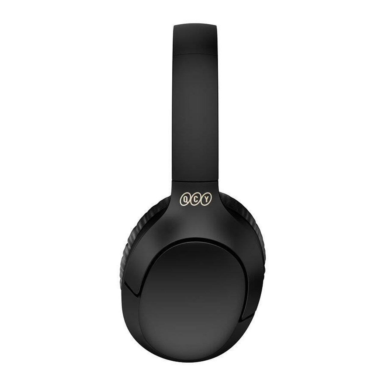 هدفون کیو سی وای QCY H2 PRO با ظاهر بسیار شیک و جذاب با رنگ مشکی و برند qcy رنگ طلایی خود روی بدنه خودنمایی میکند .