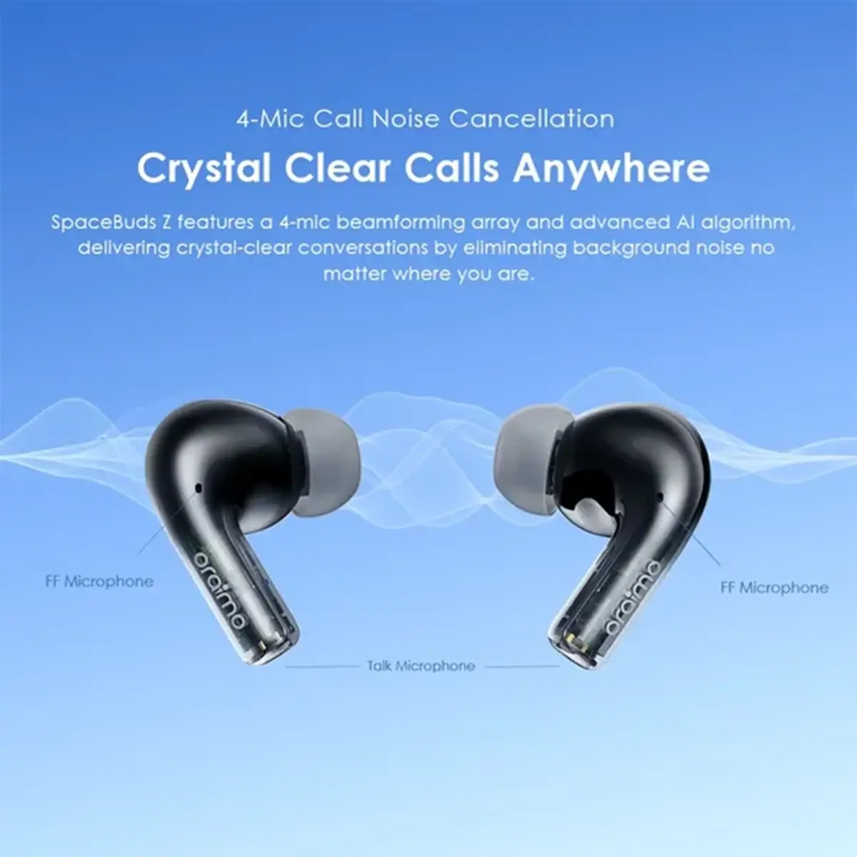 این هندزفری از درایورهای ۱۰mm داینامیک** بهره می‌برد که همراه با فناوری BassUp+، صدایی غنی و پرجزئیات با باس قوی ارائه می‌دهد. چه طرفدار موسیقی باشید یا پادکست‌های صوتی، Oraimo SpaceBuds Z تجربه شنیداری لذت‌بخشی را برای شما فراهم می‌کند.