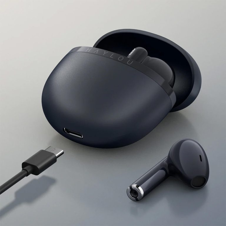 از همان اول نباید از طراحی زیبای این ایرپاد به راحتی گذشت طراحی جذاب در کنار راحتی استفاده حرفی برای گفتن درباره طراحی نمیگذارد . استفاده از جنس فلز با روکش مات ساخته شده و با یک نوار براق که اسم برند haylou روی ان جا خوش کرده و چربی دست روی این جنس بدنه نمینشیند .